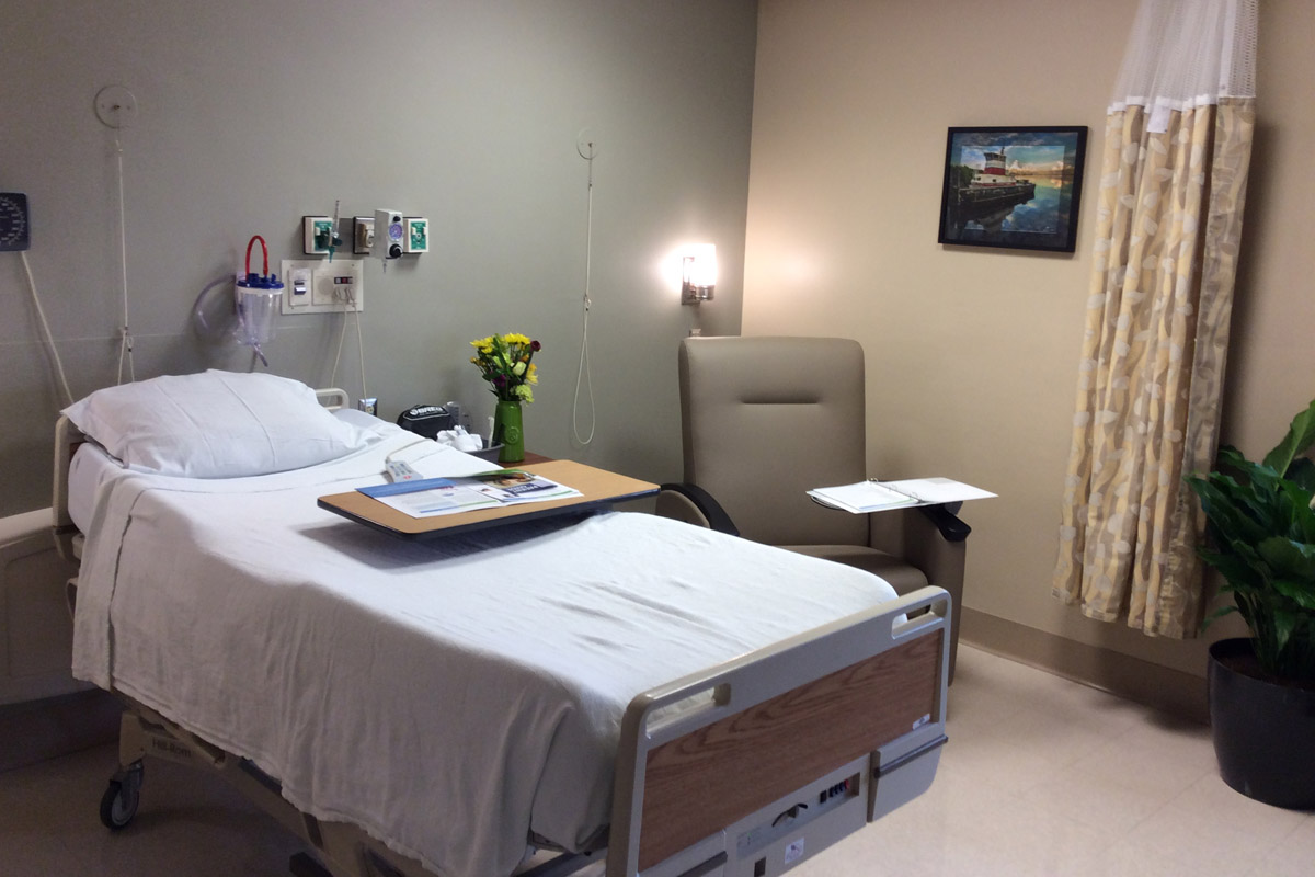 In addition, all of our patient rooms have been updated to include fresh paint and additional accommodations for visiting family and friends such as seating and reading lights.